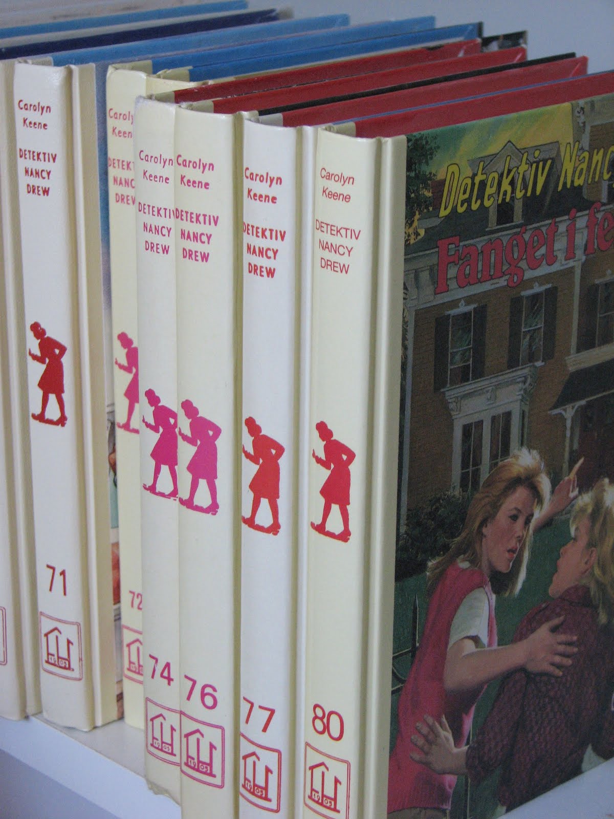 En serie med «Frøken Detektiv», en serie med «Bobsey Barna», en serie klassikere fra Disney Juniorklubben, og noen andre bøker jeg enten hadde fått i gave eller arvet etter mor og far; bøker de selv hadde da de var små. Jeg husker jeg elsket «Tamar og Trine» bøkene. Er det noen som husker dem? Jeg hadde bok nummer to og tre, men fikk aldri tak i den første. Den måtte jeg alltid låne fra biblioteket.