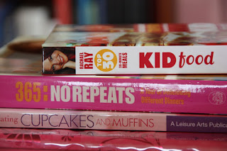 Det ble ganske mye lesestoff på meg; pocketbøker er jo så billige der borte. I tillegg kjøpte jeg meg noen kokebøker. Jeg synes alltid det er moro å bake amerikanske cookies og cupcakes, og så har jeg ønsket meg en bok av Rachael Ray. Jeg endte opp med to. Nå skal det forhåpentligvis bli slutt på den dårlige middags-fantasien! Jeg synes det er mye mer mor å bake enn å lage middag. Leke med farger og pynte ting; det liker jeg… Ta det med ro; jentene får middag hver eneste dag ( i tilfelle noen ble bekymret nå). Vi ender bare opp med de samme rettene, om og om igjen. Og det skal det bli slutt på heretter.
