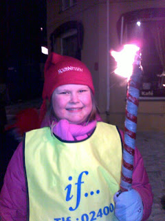 Adventskos med jentene i kveld. Først en tur på Julebyåpningen, der vi fikk nisseluer og gikk i fakkeltog. Så hjem og tenne det første adventslyset, og se på julefilm. Tilbehør: kakao med krem og kakemenn. Kunsten å kose seg, den første søndagen i advent… 🙂